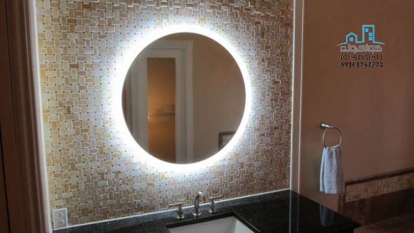یکی دیگر از آینه های نورپردازی شده که با استفاده از ریموت نورپردازی مخفی پشت آینه روشن و خاموش می شود به طوری که حتی می توان رنگ نورپردازی و افکت های نمایش نور را توسط ریموت تغییر داد .