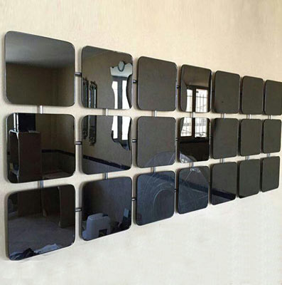 در این روش تعدادی تایل مربعی یا مستطیلی شکل به صورت جورچین کنار هم قرار می گیرند رنگ آینه باید با توجه به رنگ های بکار رفته در طراحی دکوراسیون داخلی تعیین گرد به عنوان مثال برای دیوار قهوه ای رنگ آینه بزنر و مسی مناسب خواهد بود ، لازم به ذکر است که روش آینه کاری مربعی و مستطیلی اغلب با استفاده از آینه های آنتیک یا پتینه کاری شده اجرا می شود زیرا اسیدکاری آینه با تایل های مربعی خروجی بهتری خواهد داشت .