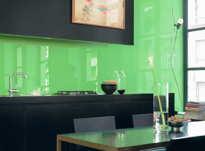 در آشپزخانه هایی که از رنگ های روشن مانند سفید و طوسی روشن استفاده شده باید از شیشه های طوسی تیره و طرح دار بکار برد  ، چنین طرحی در پروژه های لوکس و خاص استفاده می شود .