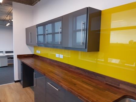 صنایع شیشه و آینه کولیوند علاوه بر شیشه بین کابینتی با استفاده از شیشه های لاکوبل رنگی کابینت های تمام شیشه ای را توسط تیم فنی مجرب اجرا می کند به گونه ای که فقط از دستگیره های استیل و لولاهای فلزی در آن استفاده می شود و مابقی نما به صورت تمام شیشه ای خواهد بود .